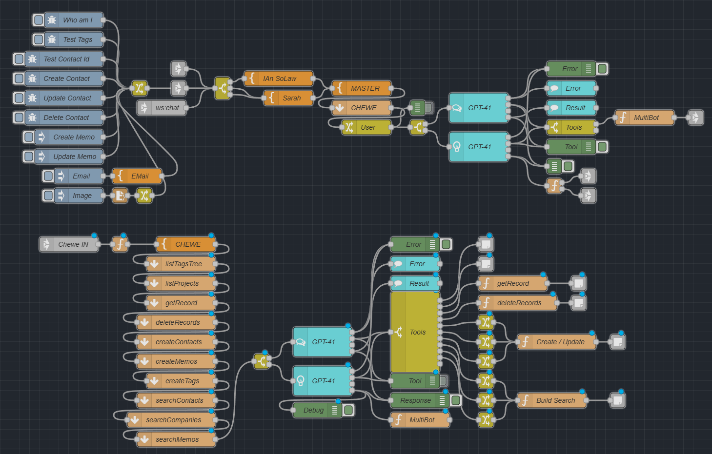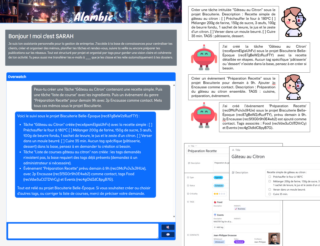 Dans notre cas, la magie consiste à expliquer notre modèle objet dans un prompt très long à deux IA : l’Orchestrateur, qui dialogue avec l’humain, et le Mécano, qui dialogue avec AirTable.